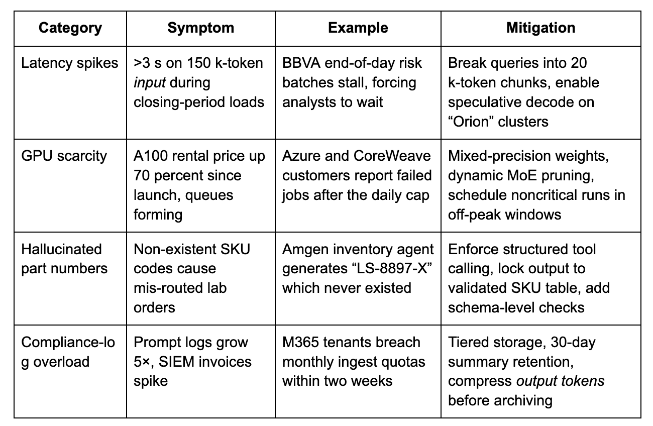 Forecast capacity. Order GPUs at least six months ahead. For ≤8 k-token calls, off-load to CPU inference or a slim SLM to keep cost predictable.